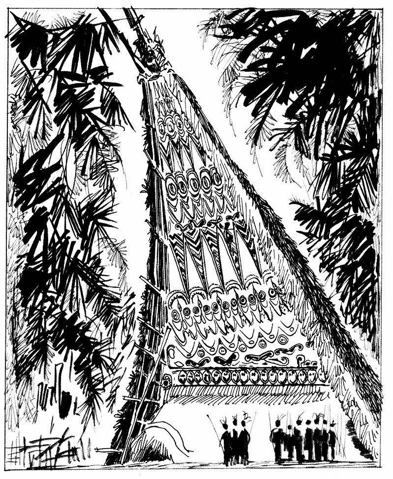 Angenommen die von ihm entworfene Südseekulisse ist authentisch und nicht ein künstliches Amalgam von Versatzstücken unterschiedlicher Südseekulturen wäre er in den 1950er oder 1960er Jahren vor Ort überhaupt auf einheimische Gemeinschaften mit einer ursprünglichen materiellen Kultur, wie er sie in der Südseeballade zeigt, gestoßen?