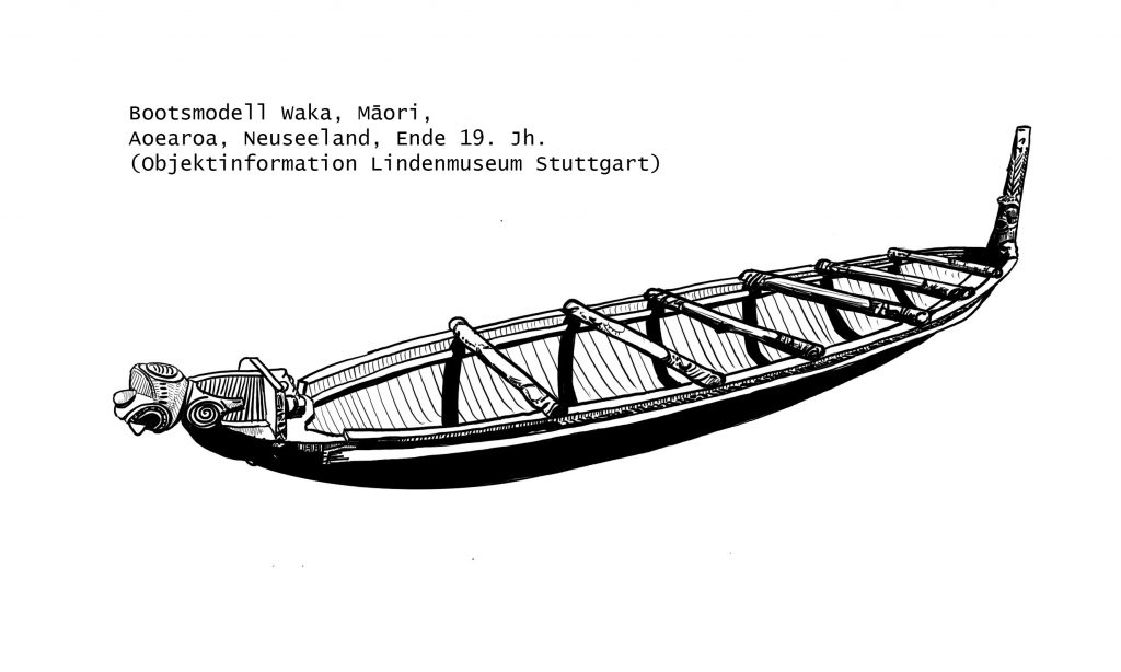Der Bau großer prächtiger Boote erforderte das Engagement der ganzen Gemeinschaft und ein hohes Maß an handwerklichen Könnens und Kunstfertigkeit. Die mit Paddeln bewegten Boote der Māori wie das oben abgebildete waren bis zu 30 Meter lang und konnten bis zu 100 Menschen fassen. Sie wurden aus einem Einbaum und aufgesetzten Seitenplanken angefertigt und spielten eine zentrale Rolle für die Identität einer Gemeinschaft. Das Boot des Stammes in der Südseeballade hat zwei Kiele und ähnelt eher dem sogenannten Luf-Boot von der gleichnamigen Insel im Bismarck-Archipel, das heute eines der Prunkstücke des Ethnologischen Museums im Berliner Humboldt-Forum ist. Die Bevölkerung von Luf wurde durch Massaker bei deutschen Strafexpeditionen 1882/83 stark dezimiert. Umsiedlungsmaßnahmen und die Umwandlung der Insel in eine Plantage besiegelten ihr Schicksal schließlich. Der Bau des gleichnamigen Boots durch die Überlebenden von 1882/83 erfolgte in dem kurzen Zeitfenster zwischen den Massakern und ihrer endgültigen Verdrängung und kann als letzte kulturelle Schöpfung der Luf-Leute betrachtet werden. Das Wissen um die Konstruktion und Gestaltung solcher Boote ging in der Folge verloren.